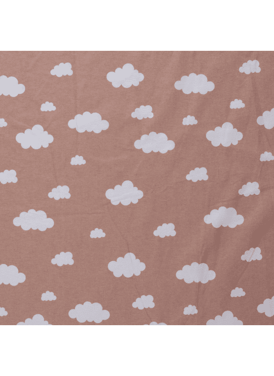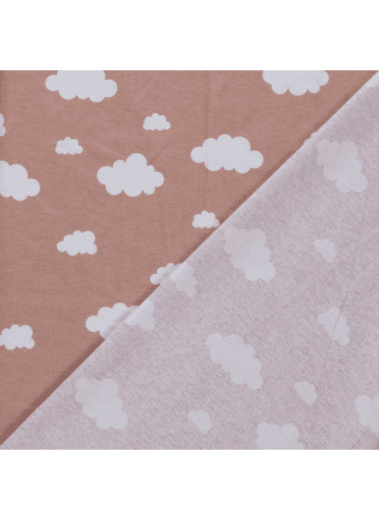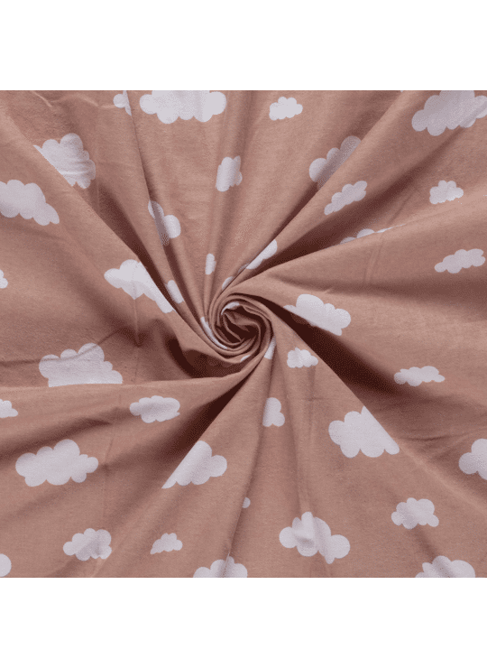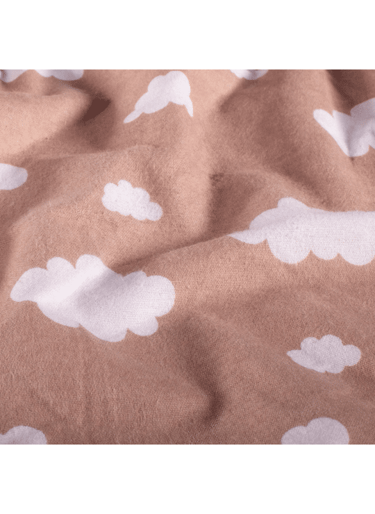 Flanel stof bedrukt met wolken in de kleur oud roze.