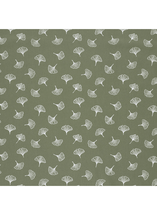 Katoen poplin met bladeren in olijfgroen.