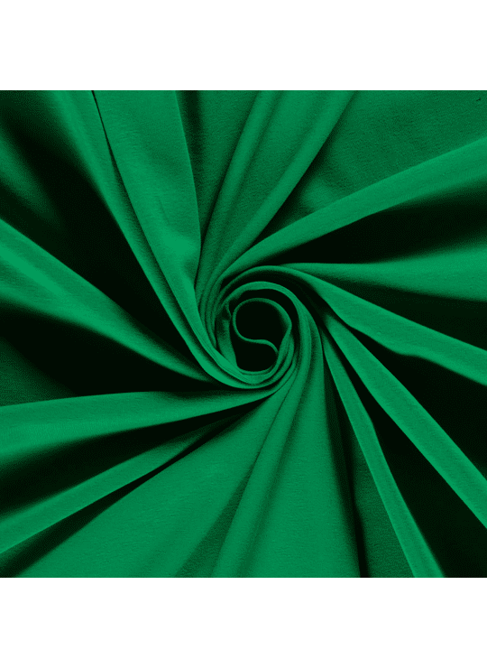 Katoen jersey stof in de kleur groen.Deze stof heeft een breedte van 150 cm en een gewicht van 200 g/m2.